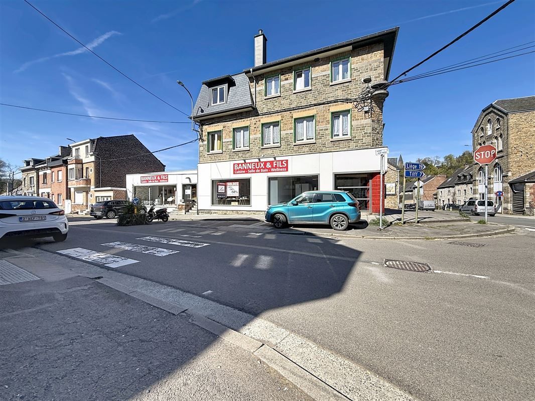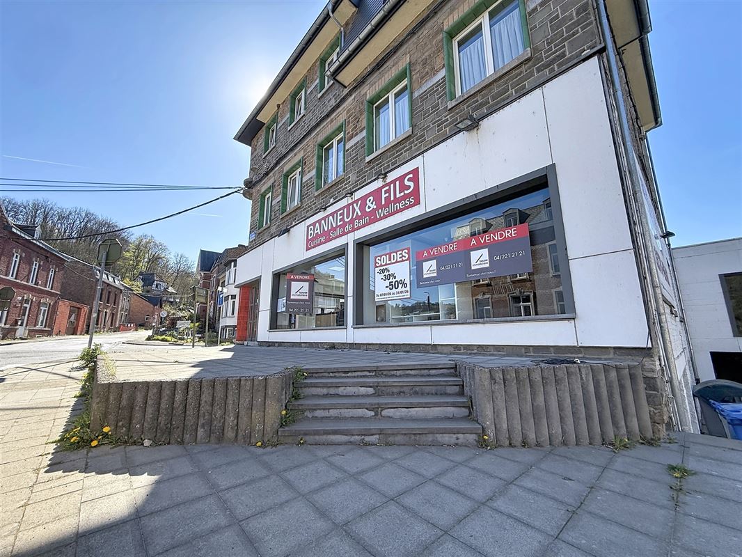 La Bourse Immobilière vous présente une opportunité exceptionnelle au cœur d’Esneux.Cet ensemble immobilier rare se compose d’une vaste surface commerciale d’environ 500 m² et de quatre appartements actuellement loués, offrant un rendement locatif immédiat. Le rez-de-chaussée du commerce propose deux espaces showroom lumineux, modulables et pouvant être scindés en deux unités distinctes, ainsi qu’un bureau.En complément, vous trouverez un troisième espace d’exposition et un vaste espace de stockage avec accès direct à trois garages, facilitant les opérations logistiques. L’ensemble commercial bénéficie d’une installation récente de panneaux photovoltaïques, un atout majeur pour optimiser les coûts énergétiques.Le chauffage est assuré par une chaudière à condensation au mazout récente, alimentée par une citerne conforme de 5.000 litres. Côté résidentiel, les quatre appartements sont tous loués et génèrent un revenu mensuel d’environ 2.700 €. Il s’agit d’appartements une chambre, d’une superficie comprise entre 50 et 63 m².Chaque unité dispose d’une installation électrique conforme et est alimentée par le chauffage central commun.À noter également que la toiture des appartements a été rénovée et isolée en 2022. Un bien idéal pour investisseurs ou porteurs de projet commercial, alliant visibilité, rentabilité et potentiel de développement. Infos et visites au 0478/15.02.55 ou francois.dessard@bourse-immobiliere.be